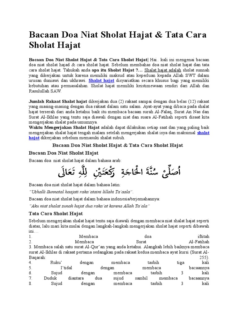 Bacaan Dan Niat Doa Sholat Hajat Bahasa Arab Latin Dan Artinya Sumbercenel