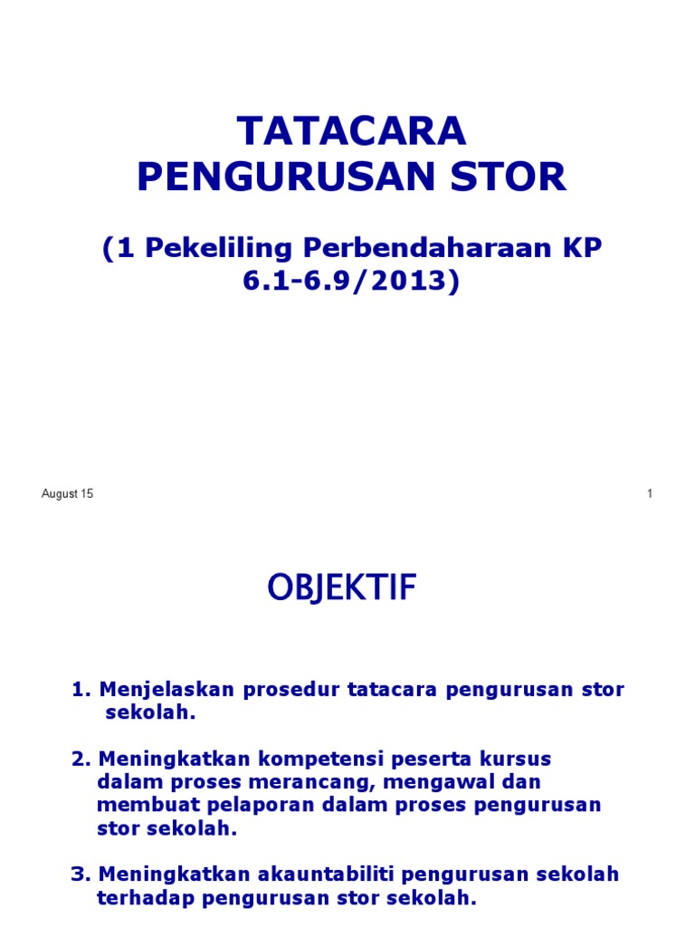 Pdf Tatacara Pengurusan Stor 1 Pekeliling Perbendaharaan Kp 6 1 6 9 2013 Dina Mariana Academia Edu