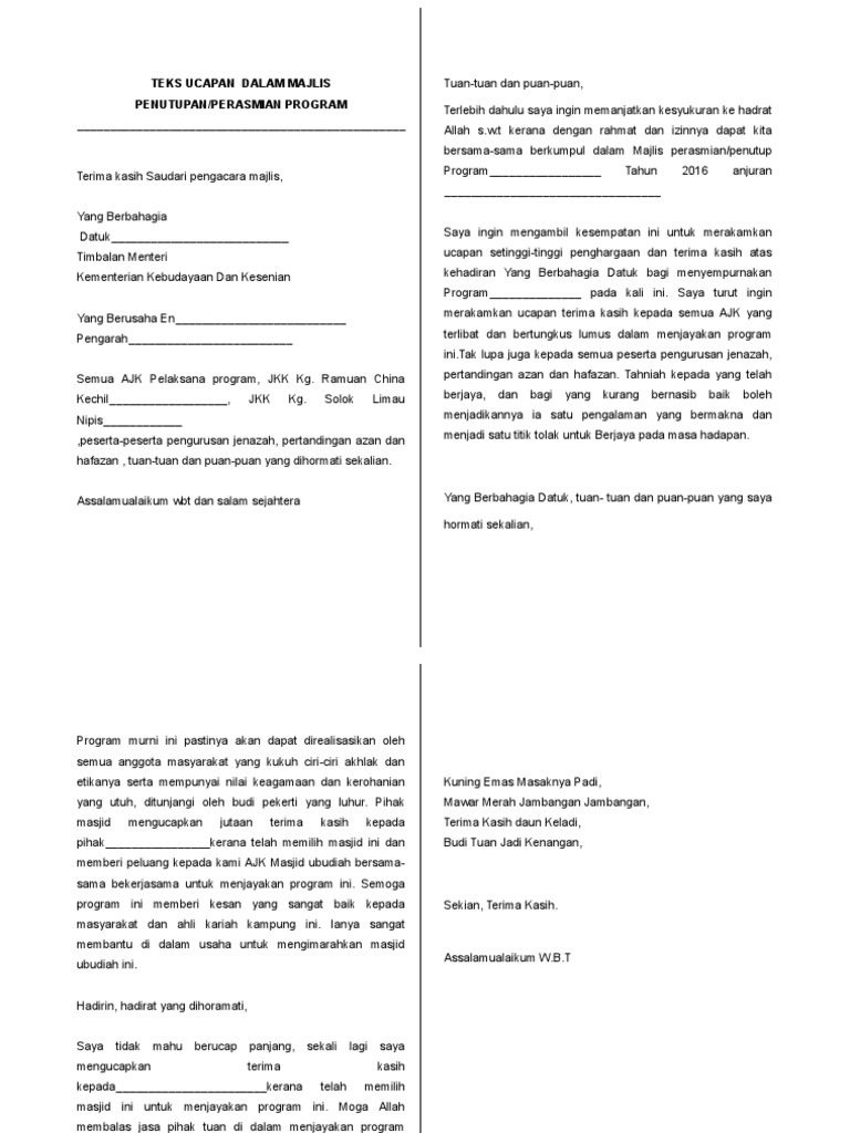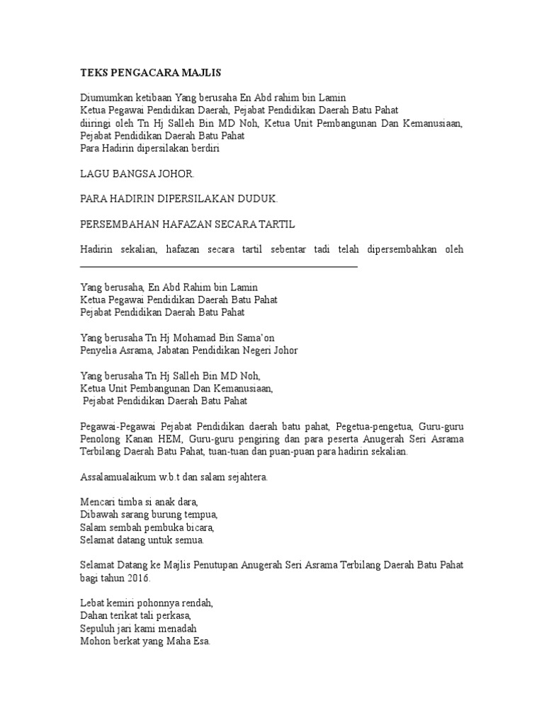 Teks Pengacara Majlis