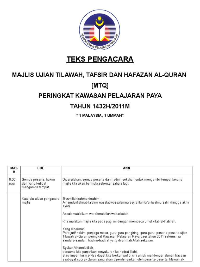 Teks Juru Acara Mtq Firqahdaerah 2012