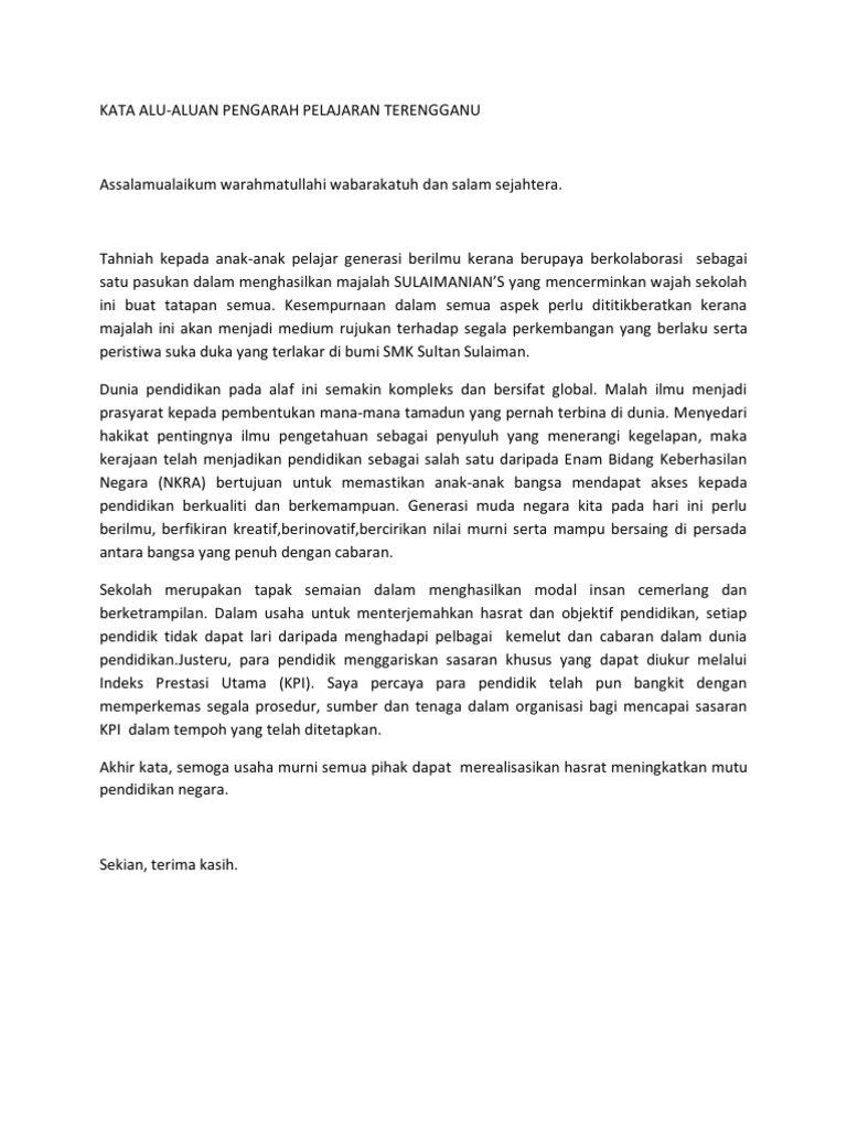 Kata Aluan Majalah Sekolah