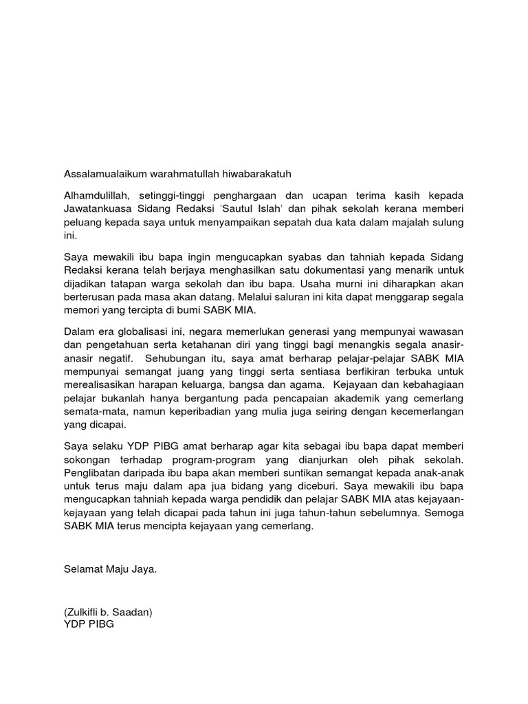Ucapan Majalah Sekolah