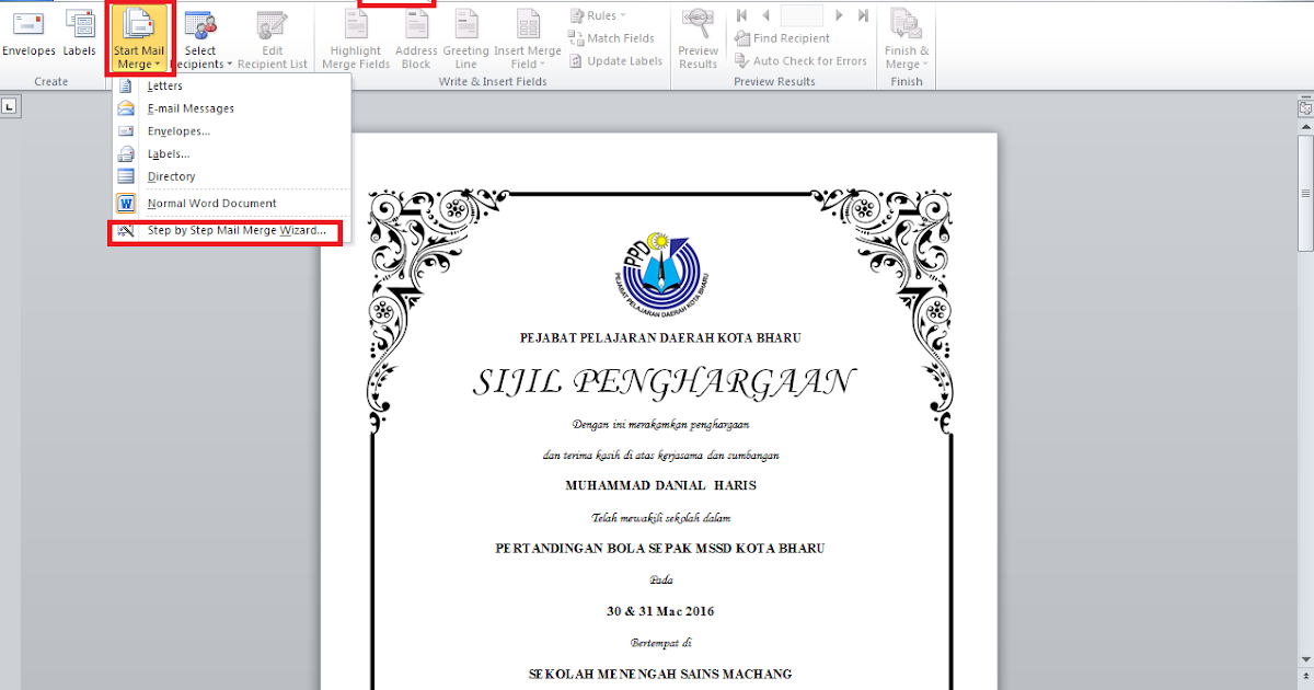 Nurin Syahirah Membina Sijil Penyertaan Menggunakan Microsoft Word