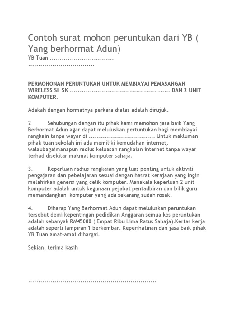 Contoh Surat Mohon Peruntukan Dari Yb